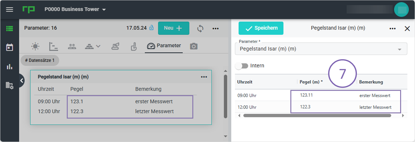 Untenstehend wird ein Muster, wie man den Parameter „Pegelstand Isar (m)“ konfiguriert und verwendet, vorgestellt.