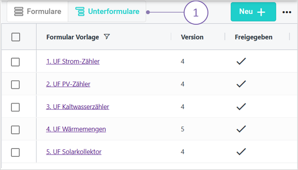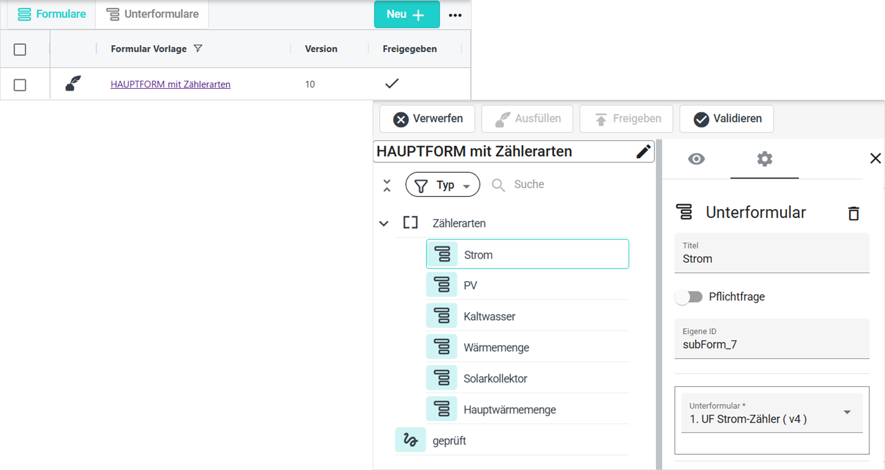 Zur Nutzung eines Unterformulars muss dieses zunächst separat erstellt und freigegeben werden.