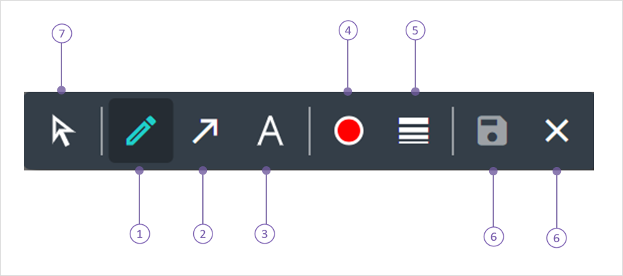Über den Auswahlmodus (7) können vorhandene Anmerkungen direkt markiert, angepasst oder gelöscht werden.