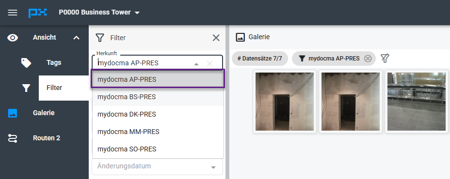 Bilder von AP können über die Filterfunktion gezielt angezeigt werden.
